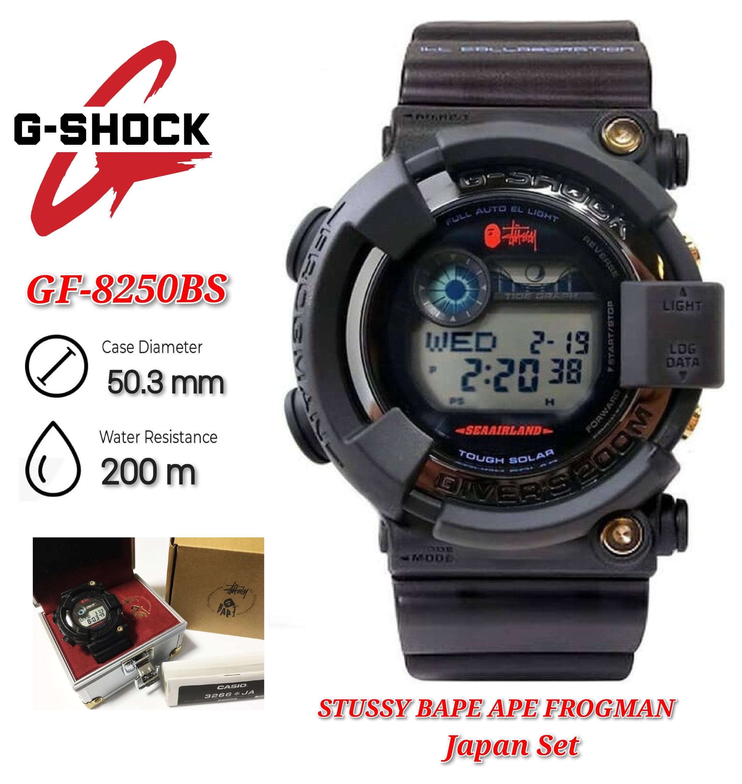 Casio G-Shock GF-8250BS STUSSY BAPE APE FROGMAN x Stussy x Bape collabs